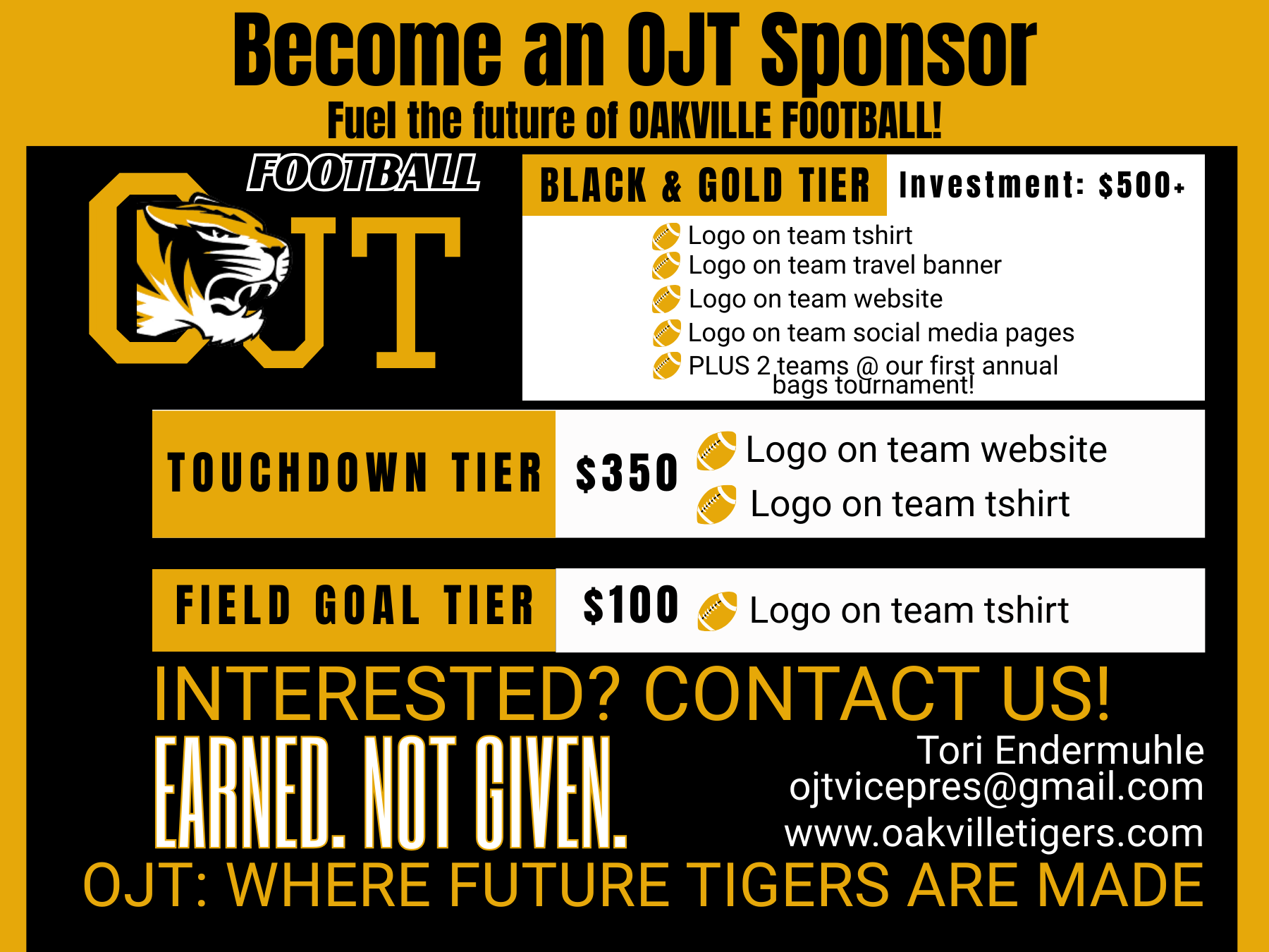 Sponsoring OJT is more than just a donation—it’s an investment in the Grit, Growth, and Leadership of our future Oakville Tigers. From gameday banners to digital highlights, we offer several ways to showcase your business to our dedicated community of families and fans.